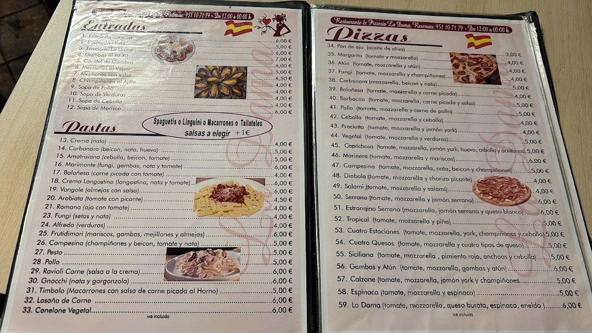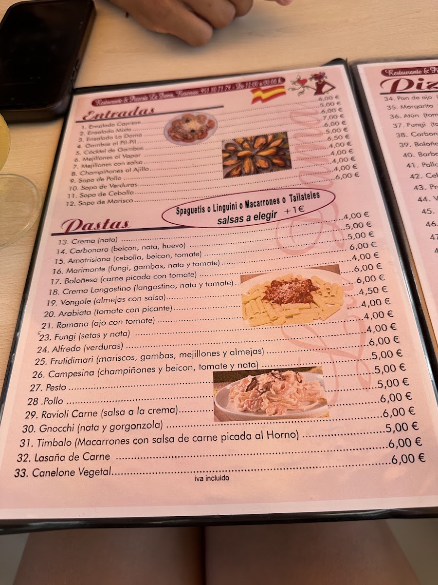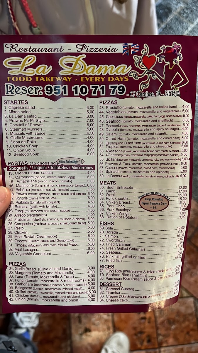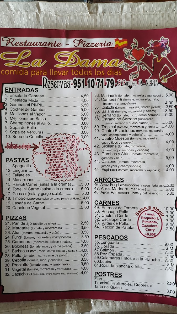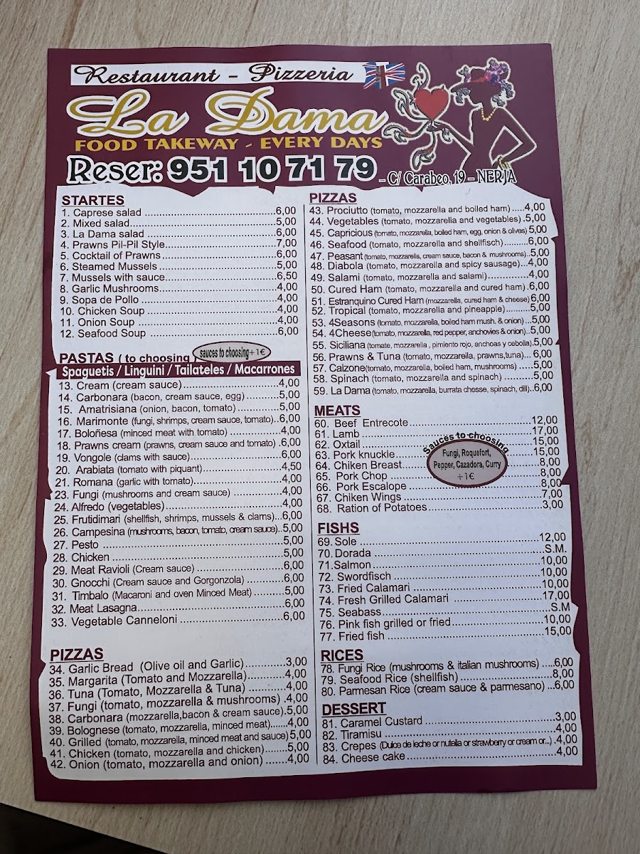 This menu fits naturally with La Dama’s casual atmosphere, inviting diners to savor their food without haste. Whether sharing a pizza over a bottle of wine or choosing a hearty main, the dishes reflect a balance between hearty comfort and Mediterranean freshness, perfectly matching the friendly, relaxed setting of Nerja’s culinary scene.