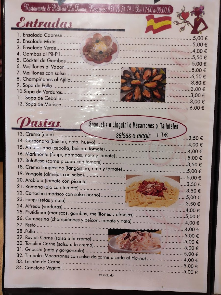 La Dama Menu
